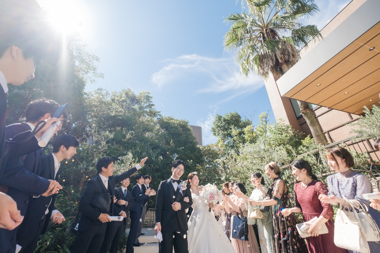 挙式が結びガーデンにてアフターセレモニーのお時間です