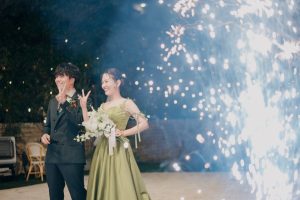 タイミングに合わせておふたりの横で花火が舞います!